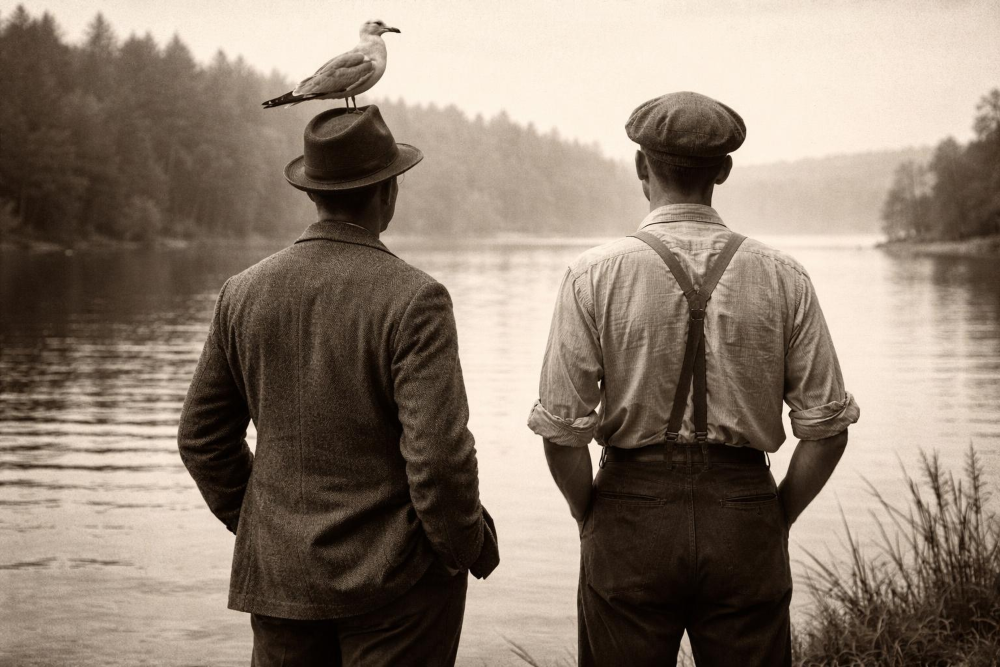 The over-excitement of Saturday led to a quiet, contemplative Sunday. I took the car for a drive and ended up at the Derwent Reservoir – a rather beautiful lake a little bit beyond Blanchland. There were several large flocks of geese chanting like Buddhist monks, filling the natural calmness with a most wonderful and spiritual sound. The lake also attracts a good number of fishermen who were standing like reeds at the waterside looking out at their lines in perfect postures of deep meditation. I took my notebook and wrote a few thoughts down.