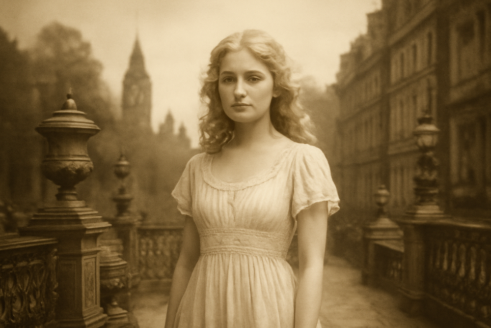 I’ve been looking at some of the pictures that came with Monty in his trunk of treasures. There’s one particular photo, of a young woman who looks so familiar. I’m sure I know her. Which is impossible. Looking at the old photo sends a shiver down my spine.